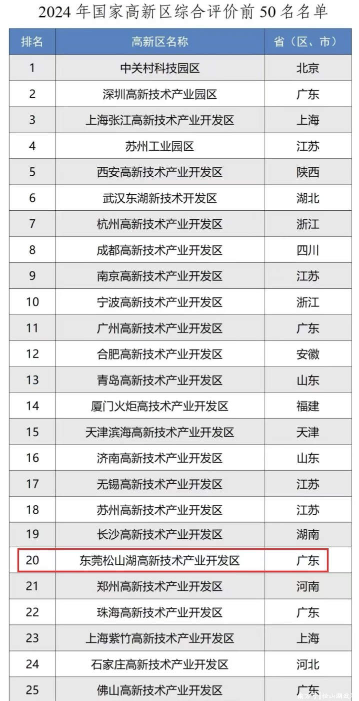 近日,工业和信息化部完成了2024年178家国度高新区轮廓评价责任。效率知道,东莞松山湖高新区轮廓评价位居世界第20位,初度置身前20强。