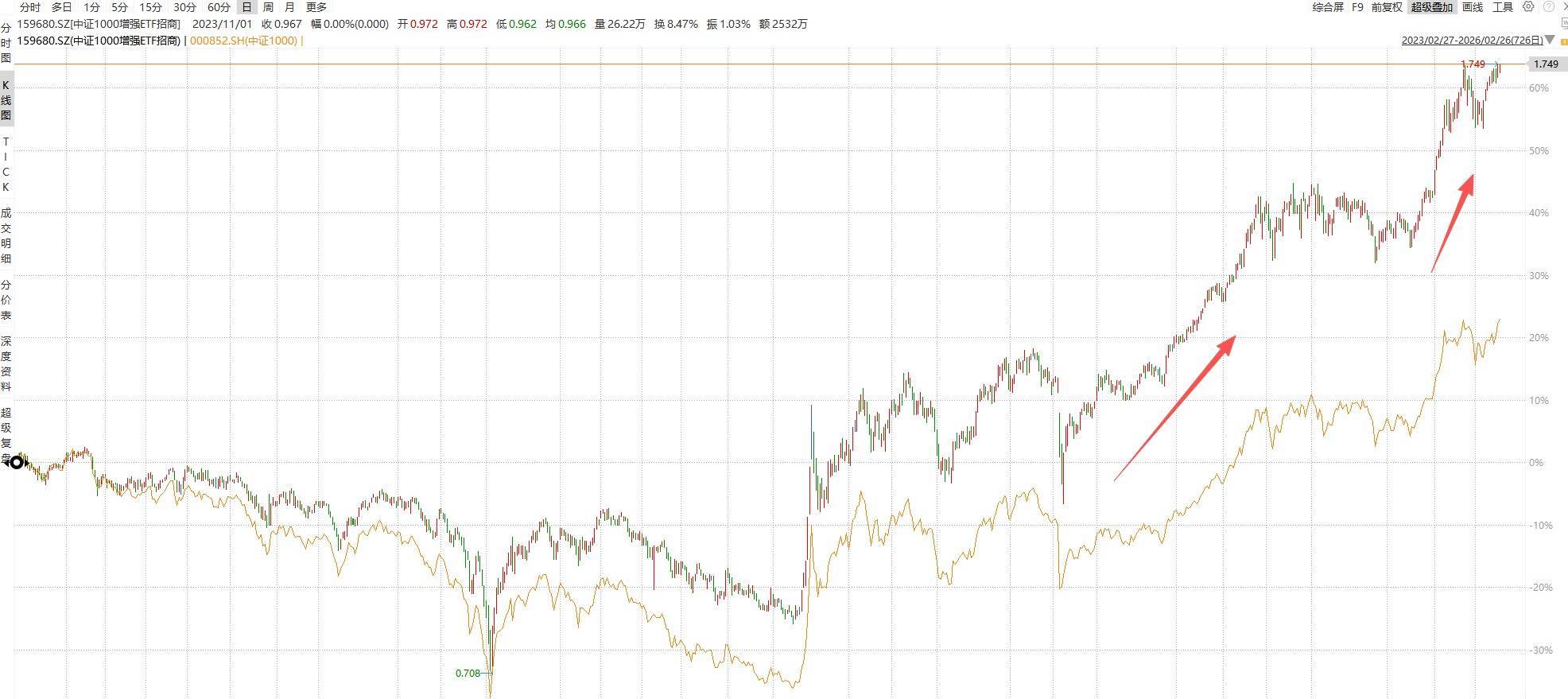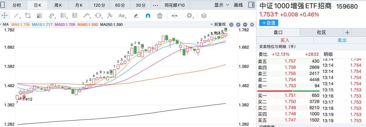 中证1000增强ETF招商(SZ159680)联贯两天刷新上市新高了。